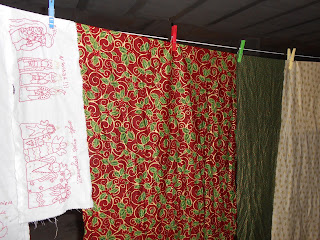 Las telas lavadasy los cuadros con los dibujos ya que son de algodon y tal vez encogan un poco.